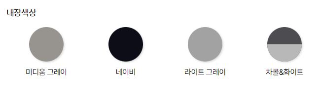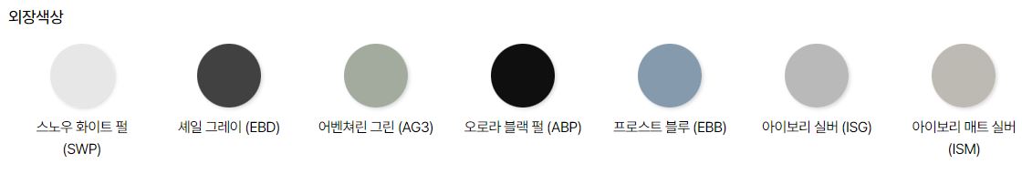 차량 색상은 다양하게 선택할수 있습니다. 외장색상은 총 7가지 색상중에 선택할수 있고 인테리어 내장색상은 총 4가지중 선택할수 있습니다.